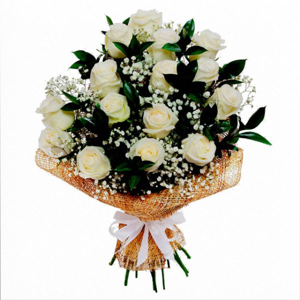 זר ורדים לבן בשילוב אלמנטים ירוקים. הזר מגיע עם קישוט ואריזת רשת. מתאים לכל אירוע שתרצו לשמח את הקרובים
